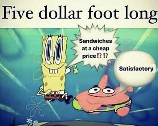 minus-squarecomador @lemmy.worldlinkfedilinkEnglisharrow-up1·16 days agobleh: subway reference. I’ll pass on ever eating another Jared Pedo Sandwich ever again.