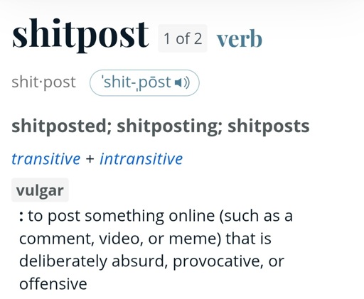 Precisely defining shitpost would annihilate it’s meaning and we’d be forced to use another word.