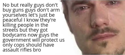 Fuck “the right to bear arms”, you don’t need legal weapons, do illegal shit, fuck their peace up. Do not let them sleep, eat or work. Be disturbing the peace, be gay, do crime. You do not need weapons, you don’t need violence, you do need to step out of line and stop being peaceful.