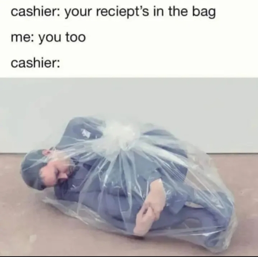 minus-squareMaultasche@lemmy.worldlinkfedilinkarrow-up4·2 months agoWhy would the cashier tell me that I put the receipt in my bag?