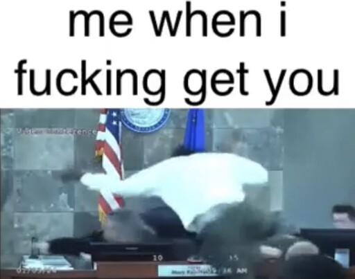 minus-squaresnake@lemmy.worldlinkfedilinkarrow-up4·1 month agoI think it’s from that viral video in which a guy standing trial launches himself on the judge.