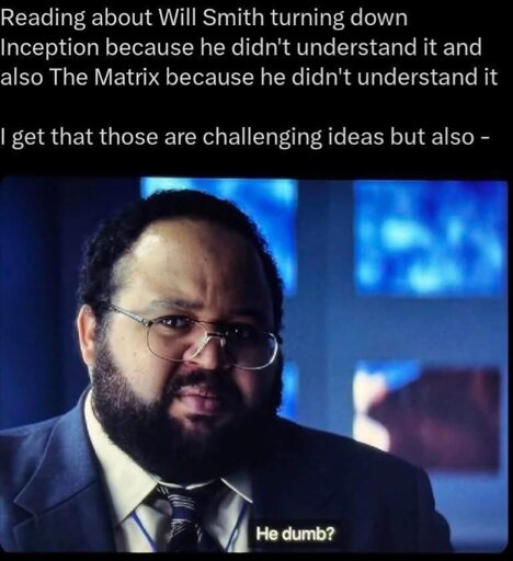 minus-squareAeronMelon@lemmy.worldlinkfedilinkarrow-up6arrow-down1·1 day agoBut he took Wild Wild West, Hancock, and I Am Legend. Okay.