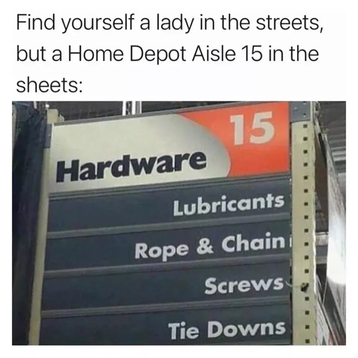 I’m always trying to find love at Home Depot cause my house is falling apart and I could kill two birds with one stone