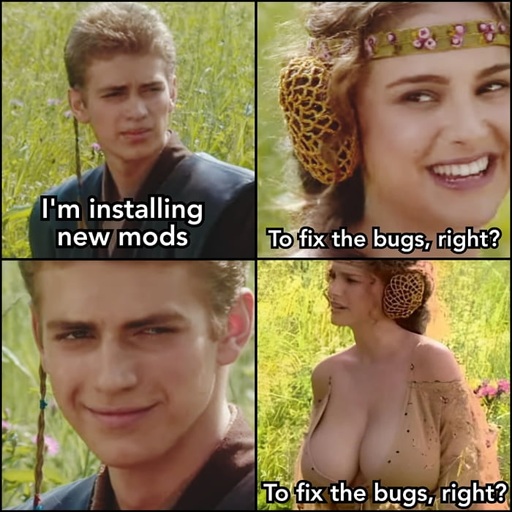 Chippys_mittens@lemmy.world to Lemmy Shitpost@lemmy.world · 28 days agoInstalls 200 mods on a 20 year old game.lemmy.worldimagemessage-square4linkfedilinkarrow-up1274arrow-down125
