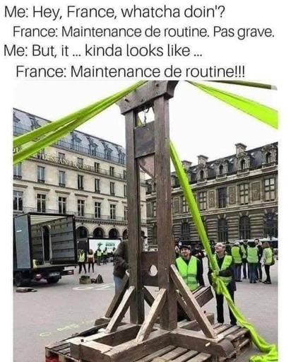 minus-squareSubArcticTundra@lemmy.mllinkfedilinkarrow-up2·26 days agoI’m impressed that they have kept it legal to possess a functional guillotine See other comment