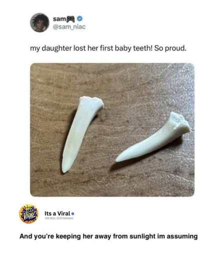 ickplant@lemmy.world to Lemmy Shitpost@lemmy.world · 9 hours agoBaby teethlemmy.worldimagemessage-square3linkfedilinkarrow-up1142arrow-down11