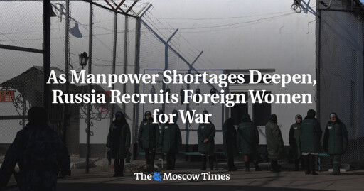 arrow-up114arrow-down1external-linkAs Manpower Shortages Deepen, Russia Recruits Foreign Women for Warwww.themoscowtimes.comMmmm@lemmy.world to World News@lemmy.worldEnglish · 22 days agomessage-square2linkfedilink