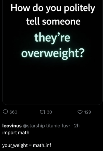kali_fornication@lemmy.world to Lemmy Shitpost@lemmy.world · 3 days agomight be hard to lose the weight, thenlemmy.worldimagemessage-square0linkfedilinkarrow-up139arrow-down16